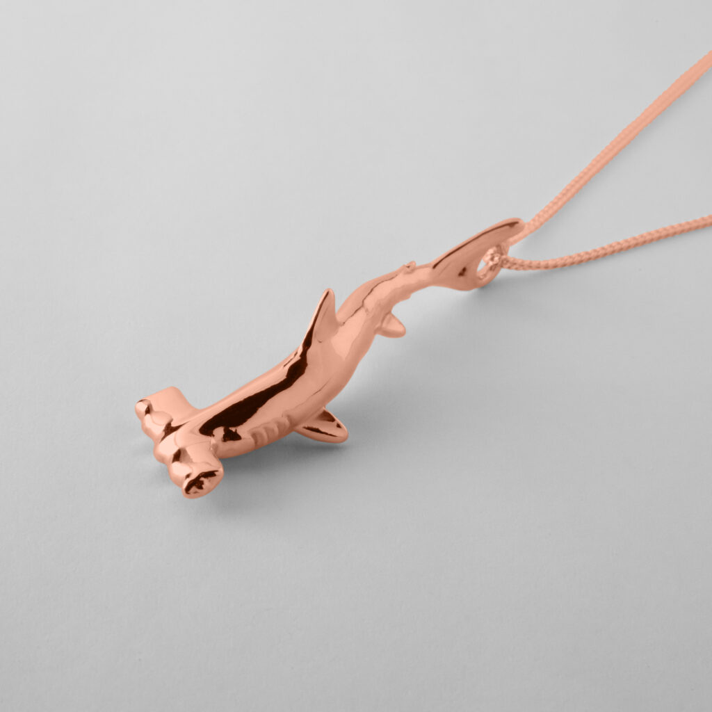 For those who truly admire the beauty of the ocean, our large hammerhead shark pendant is a stunning homage to this incredible marine creature. Available in solid sterling silver or solid gold, this piece boasts a high-polished finish that highlights its striking design and lifelike details.