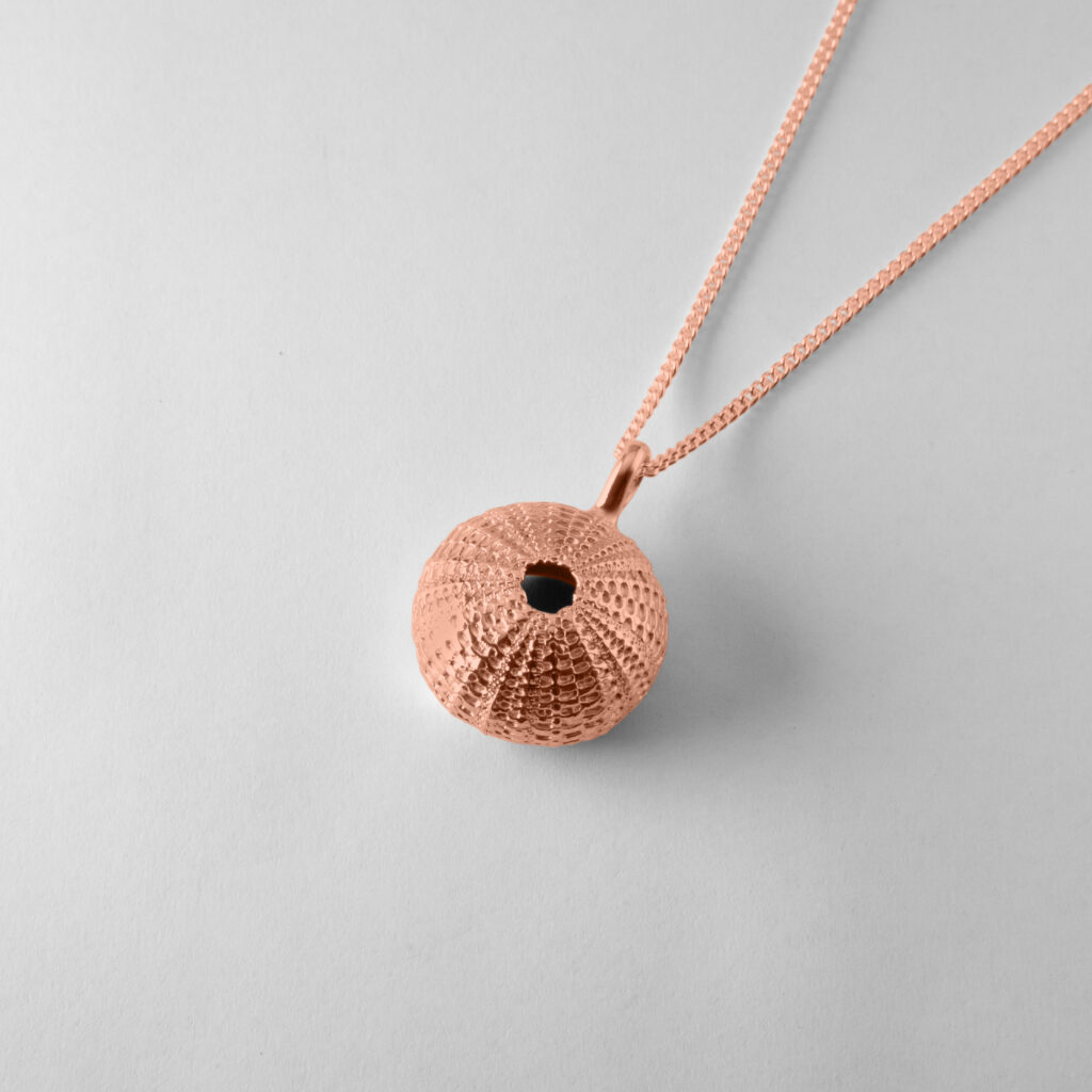 An elegant Large Urchin pendant, this beautifully detailed Sea Urchin Pendant is timeless and sophisticated. Inspired by the essence and depth of the ocean, this enchanting piece draws from the intricate patterns of sea urchin shells, perfect for those looking to add a beachy, ocean vibe to their outfit.