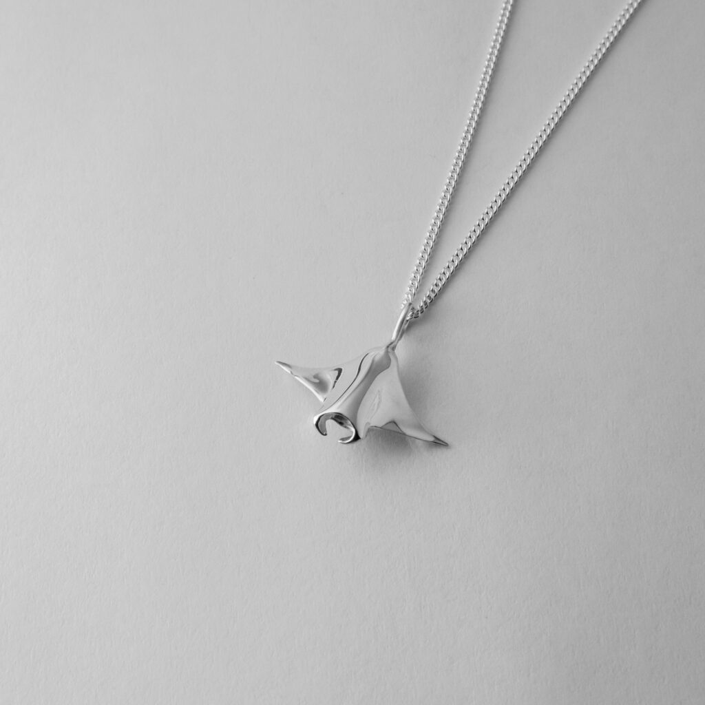 The The Flying Manta Ray Pendant is the smallest pendant in the collection, making it a great gift for divers and ocean lovers alike The delicate pendant dangles elegantly from an artful loop in the tail.