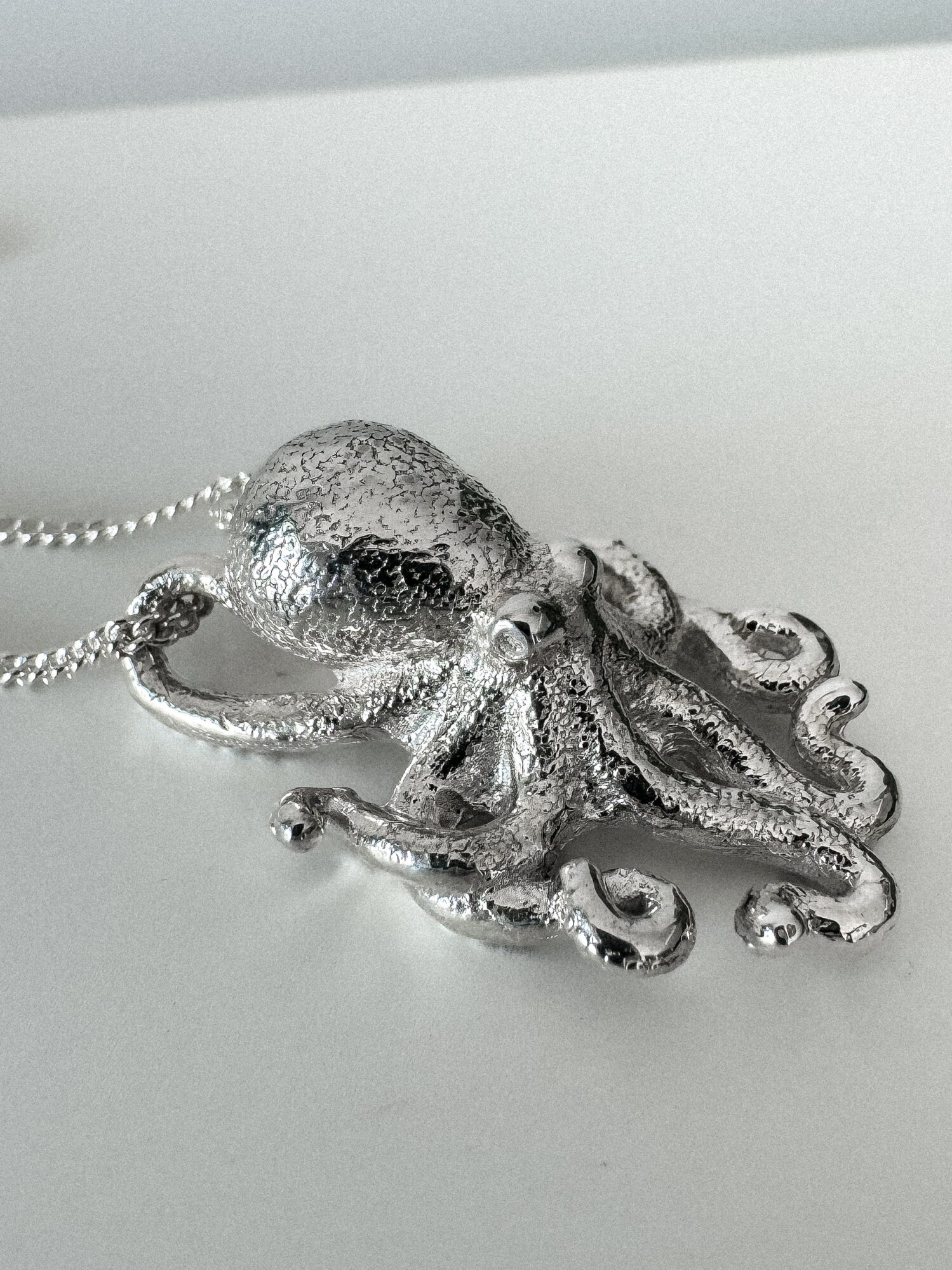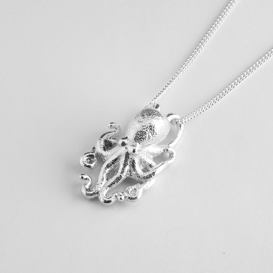 Delicate yet full of charm, our Small Octopus Pendant features intricate detailing on every side, including the curling tentacles and textured body. Its subtle elegance makes it perfect for everyday wear or layering with other pieces. Complete the look by pairing it with our Octopus Earrings.