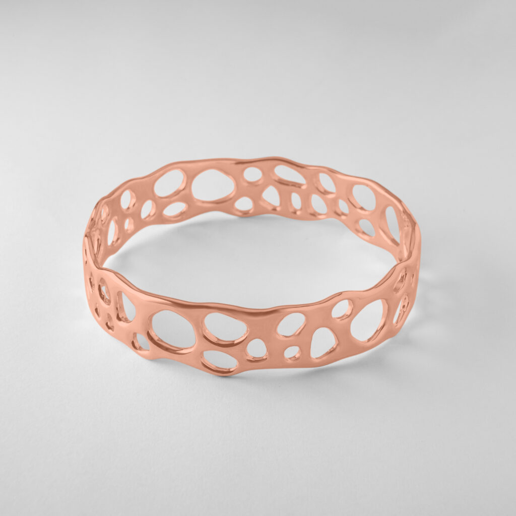 Each piece we create is handcrafted with passion and dedication, ensuring that every detail is infused with our love for nature. The Tidal Swell bangle showcases the same organic shapes and soft, curved edges as the ring, beautifully mirroring its design while standing out as a statement piece on its own.